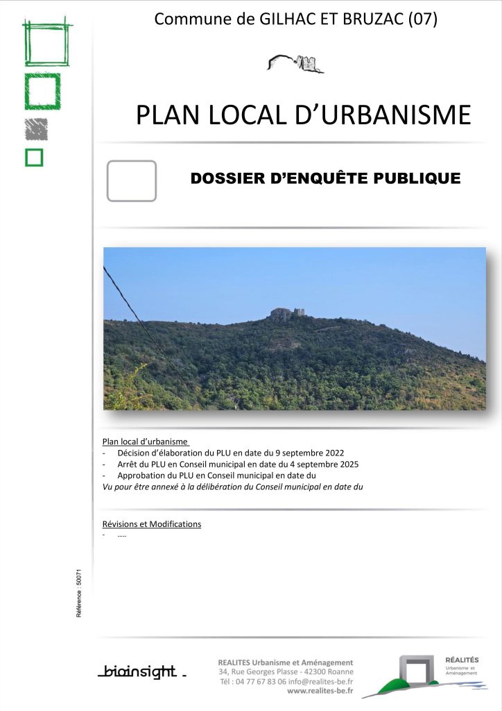 ENQUETE PUBLIQUE SUR LE PLAN LOCAL D’URBANISME
